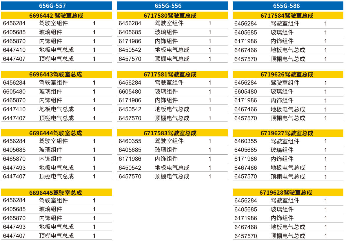 为提高驾驶室总成零件订购的方便性,山工机械开发了一系列的驾驶总成配件,可根据您产品不同的玻璃组件和电气总成购对应的驾驶室总成。其详细信息同样也已经在山工机械电子图册维护,也可根据车型车号通过电子图册进行选购。